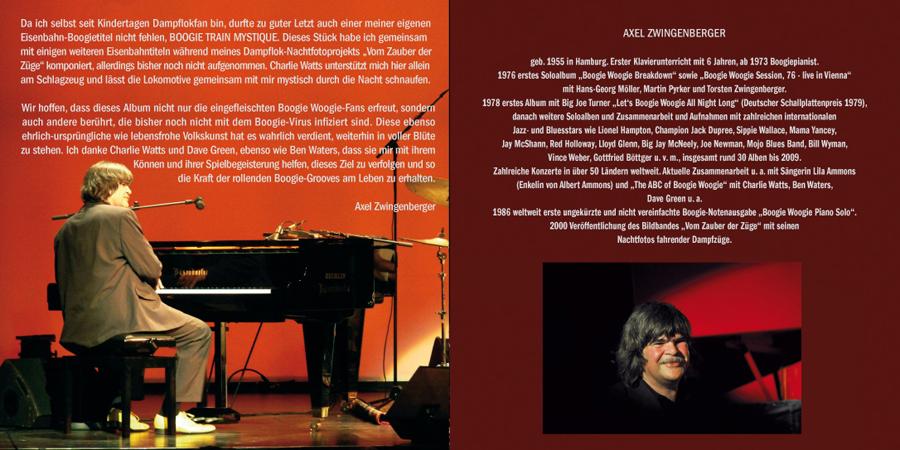 Axel Zwingenberger gibt im Jahr rund 200 Konzerte auf der ganzen Welt und ist eine Kapazität auf seinem Gebiet: Klavierspielen im Sinne der Originale des Boogie. Dies hatte auch Charlie Watts erreicht und so gründeten sie ein Trio mit dem bekannten Studiobasssten Dave Green zusammen. Es war natürlich eine Ehre für mich für diese Herren arbeiten zu dürfen.